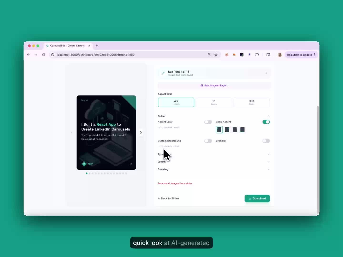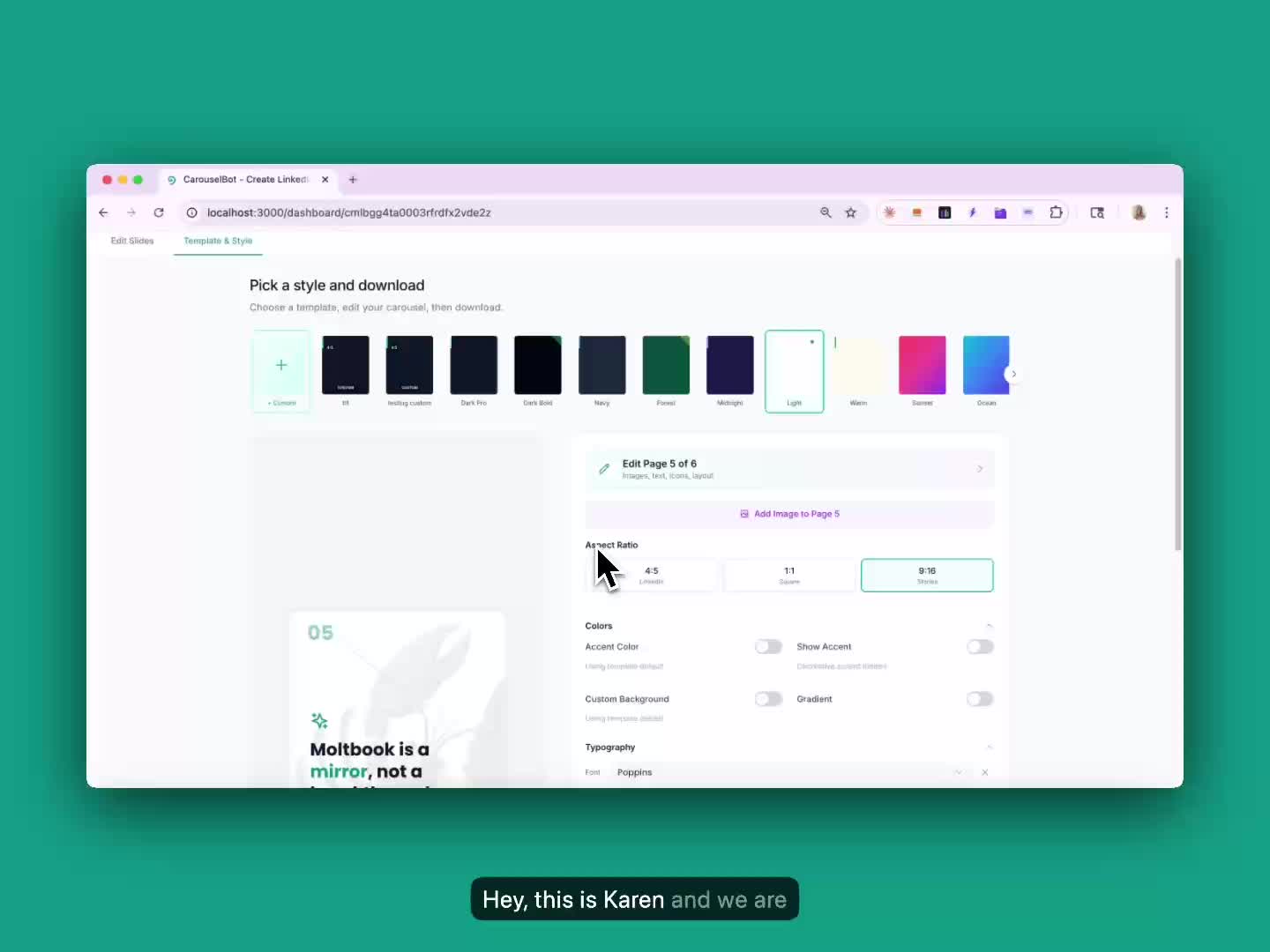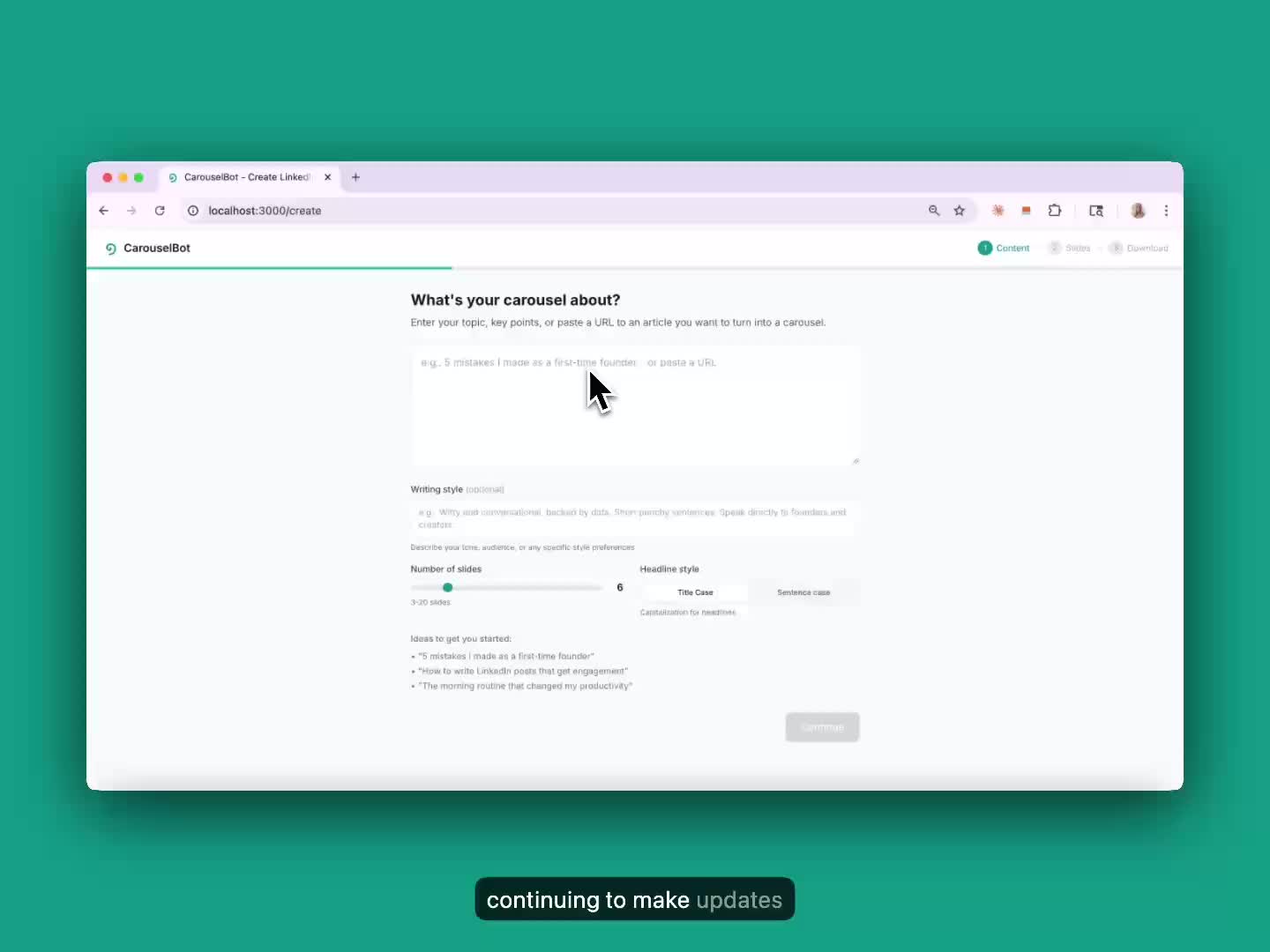 Generate carousel content from your topic.
