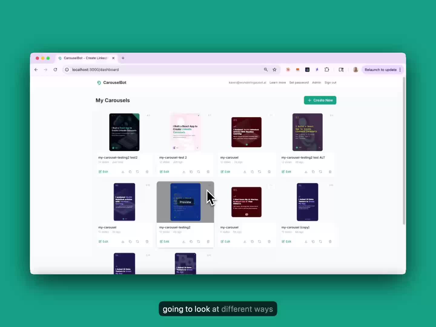 Manage your saved carousels.